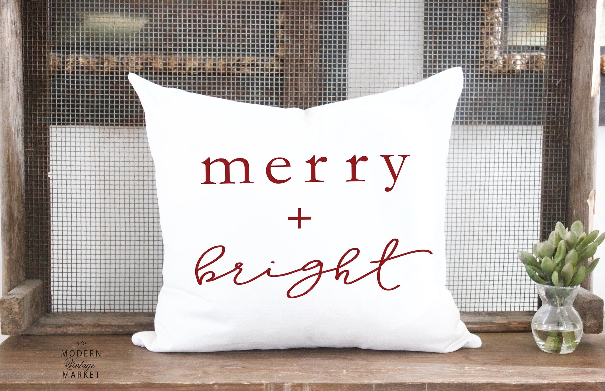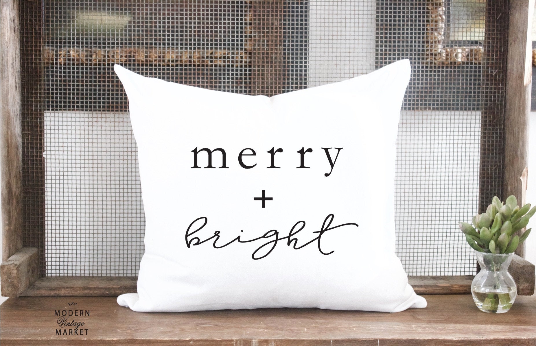 Farmhouse Christmas Pillow Holiday Pillow Cover Cotton Canvas Cover With Zipper Closure Add that perfect final touch to your holiday decor with our custom "Merry + Bright" pillow.