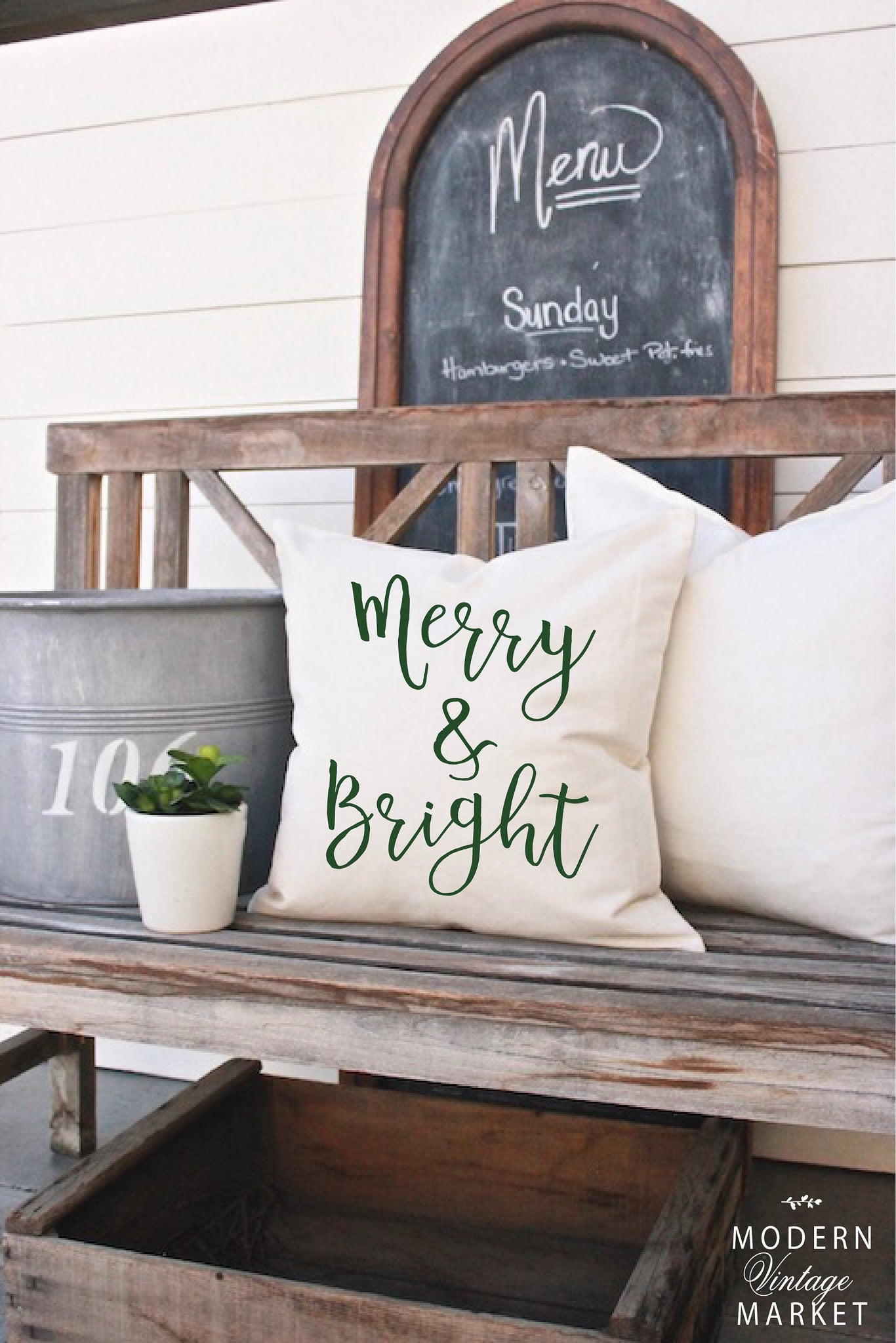 Add that perfect final touch to your holiday decor with our custom "Merry & Bright" pillow. Our vintage style makes our handcrafted holiday pillow a standout this season.