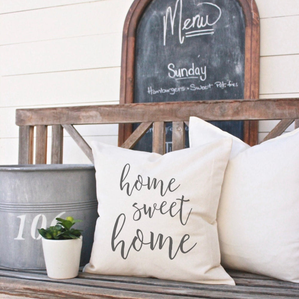 with our "Home Sweet Home" accent pillow cover.